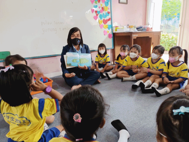 β anak dibacakan cerita tentang Keanekaragaman Indonesia, mulai dari suku Jawa,