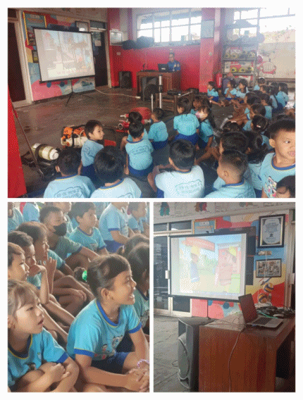 menjelaskan kepada anak – anak. Beliau memaparkan bahwa tugas pemadam tidak