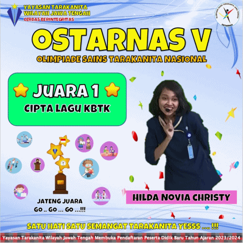 Salah satu cabang lomba yang diselenggarakan dalam OSTARNAS V pada 8 – 12 November 2022 adalah Lomba Cipta Lagu untuk jenjang guru TK. Hilda Novia Christy, S.Pd berhasil meraih Juara 1 Lomba Cipta Lagu dalam ajang tersebut. Lagu yang berjudul “Rumahku” menceritakan tentang bagian rumah dan fungsinya. Semoga lagu ini bermanfaat sebagai salah satu referensi bahan belajar anak. Profciat, Bu Hilda!