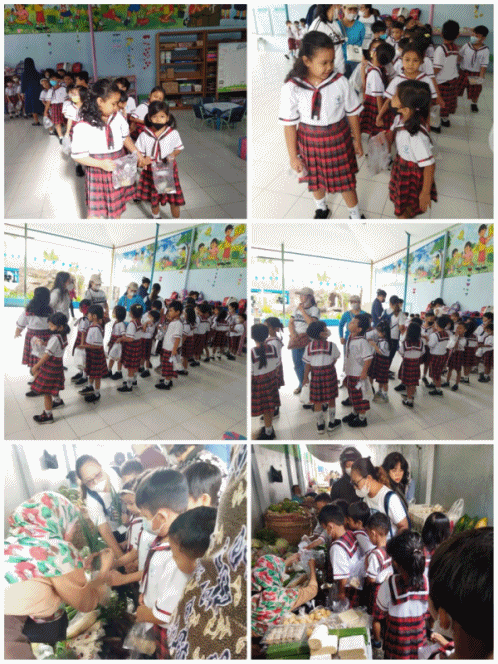 Sesampainya di sekolah, anak – anak bercerita pengalaman mereka di pasar. Bagaimana lelahnya jalan menuju ke pasar, barang – barang yang dijual di pasar, para penjual yang baik dan ramah, bagaimana mereka membayar dan mendapat kembalian, dan sebagainya. Antusiasme anak – anak sungguh luar biasa. Selesai bercakap – cakap, anak – anak mulai memasak bakwan, mulai dari mengupas bawang, jagung, mencuci wortel, memetik kecambah, mengiris lembut wortel, dan mencampur dengan tepung sampai akhirnya bakwan siap dinikmati. Semua anak menikmati hasil masakan mereka. Dari kegiatan ini, anak – anak mengenal pasar, bagaimana etika berbelanja, dan bagaimana susahnya menyiapkan makanan yang selama ini dilakukan oleh orang tua di rumah. Semoga pengalaman ini menjadi inspirasi dan bahan refleksi bagi anak – anak untuk menghargai makanan dan orang – orang yang telah menyiapkannya.